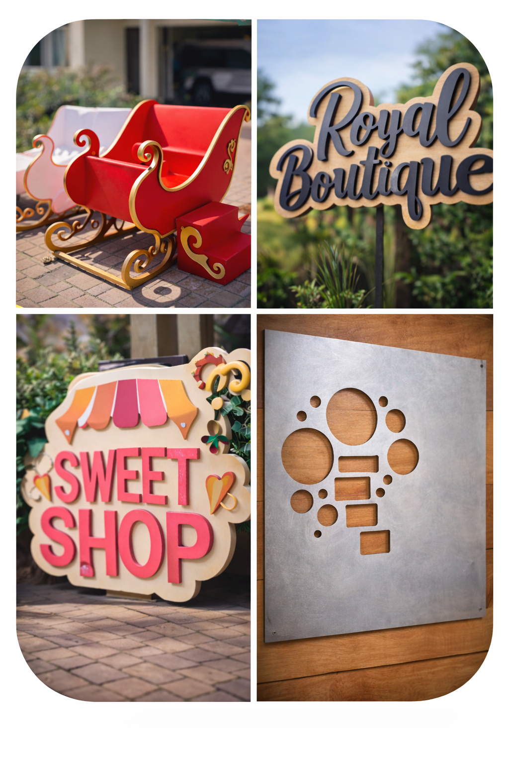 We use CNC technology to produce custom signs, logos, lettering, wall art, displays, and one-of-a-kind builds. Whether you need professional signage for your business, custom pieces for a school or church, or something creative like a custom-built Santa sleigh for the holidays, our CNC capabilities make it possible.