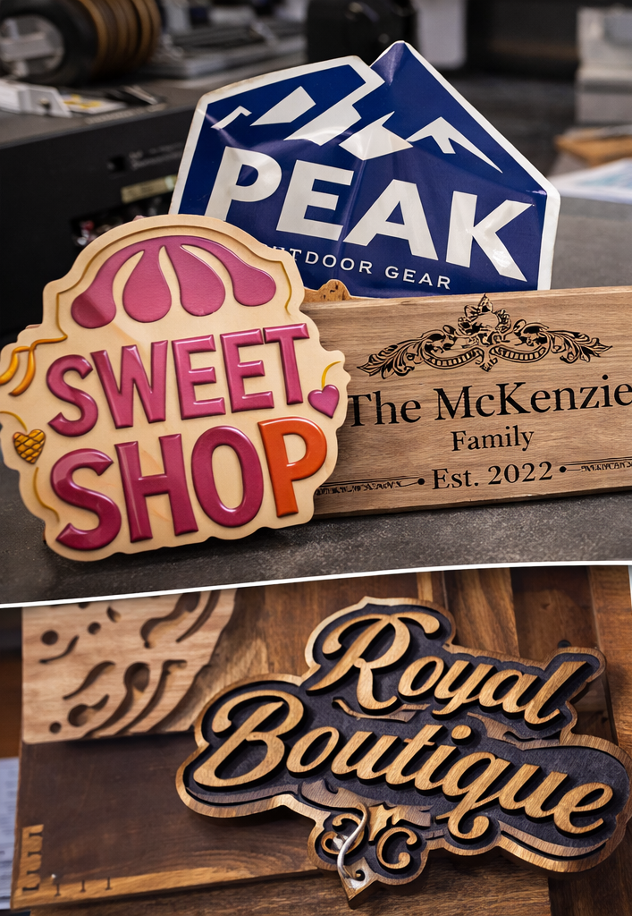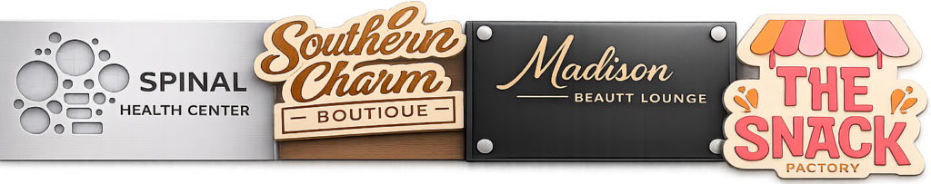 Choose from wood, acrylic, PVC, aluminum, and specialty materials. From dimensional signage to engraved panels and custom components, we’ll help you find the right solution.
